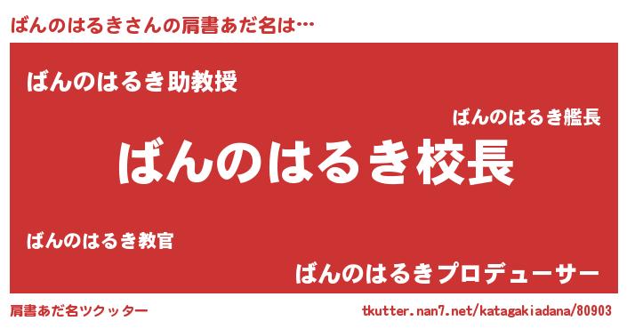 | ヒーロー風カッコイイあだ名 | 『ネオバンノハルキ』『仮面バンダー』 |