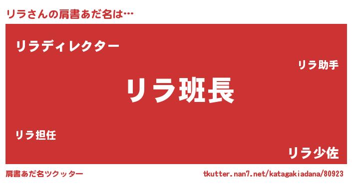 | ヒーロー風カッコイイあだ名 | 『幻影騎士リラ』『慈愛の使者リラ』 |