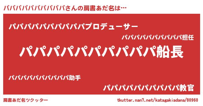 | 意味不明あだ名 | 『住所不定無職パパパパパパパパパパ(4歳)』 |