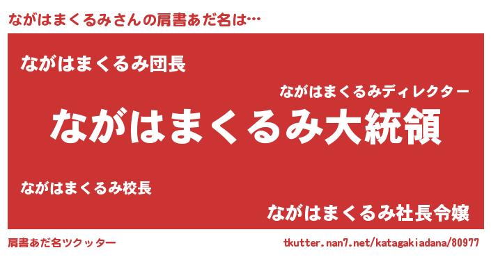 | 欧米人風あだ名 | 『ながはまくるみクリステル』 |