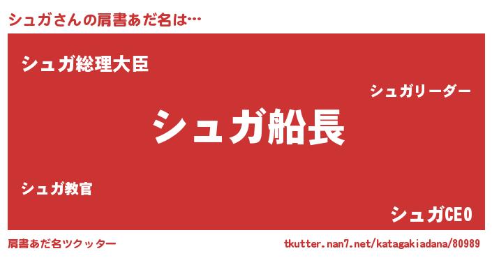 | ヒーロー風カッコイイあだ名 | 『ウルトラシュガマン』『スーパーシュガ』 |