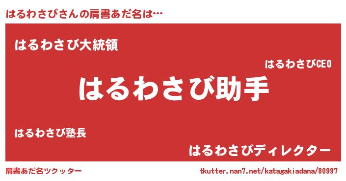 | 胡散臭い通販商品みたいなあだ名 | 『お金では代えられないイリジウム磁石…その名も「はるわさび」』 |