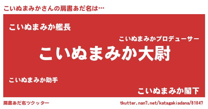 | 男性向けラノベタイトル風あだ名 | 『転生したらこいぬまみかだった件』 |