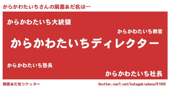 | 男性向けラノベタイトル風あだ名 | 『はたらくからかわたいちさま!』 |