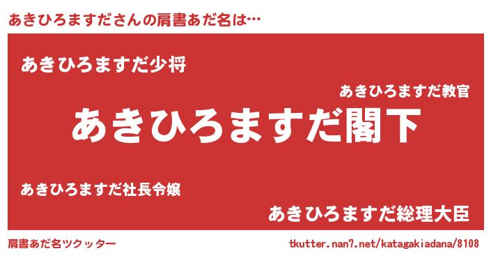 | 男性向けラノベタイトル風あだ名 | 『Re:あきひろますだから始める異世界生活』 |