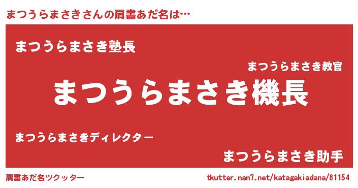 | 欧米人風あだ名 | 『まつうらまさき・ステッグマイヤー』 |