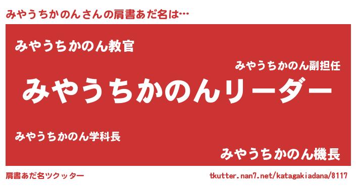 | 男性向けラノベタイトル風あだ名 | 『みやうちかのんの嫁は女の子じゃないと思った?』 |