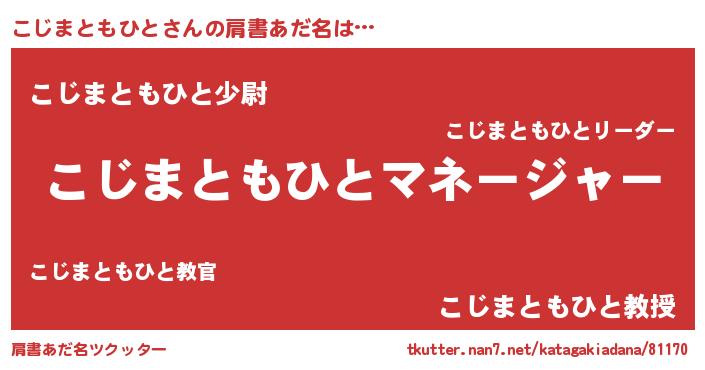 | 男性向けラノベタイトル風あだ名 | 『こじまともひとに滅ぼされるだけの簡単なお仕事です』 |