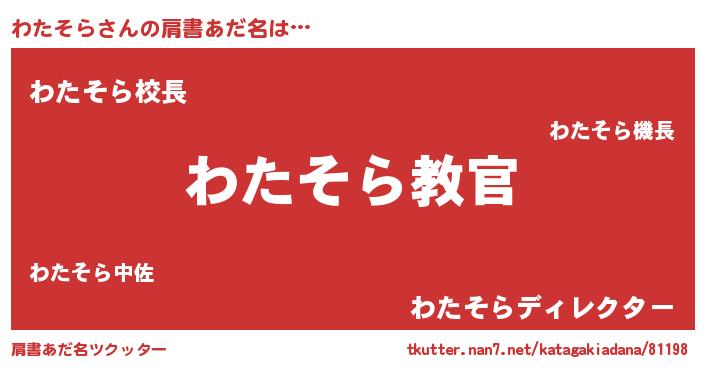 | ヘコむあだ名 | 『わたそら(遠い目)』『わたっ子』 |