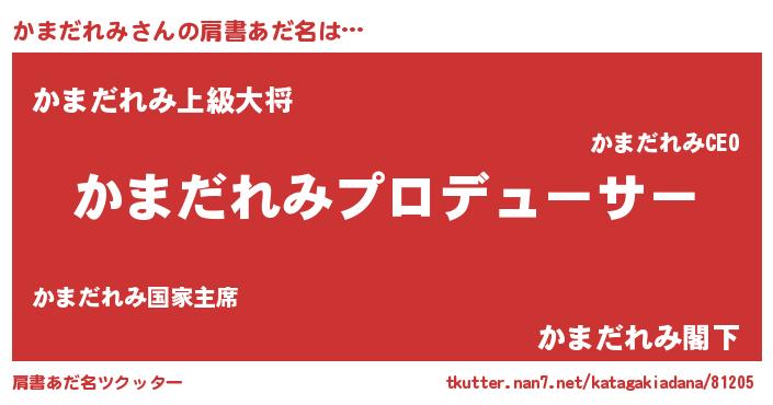 | 男性向けラノベタイトル風あだ名 | 『はたらくかまだれみさま!』 |