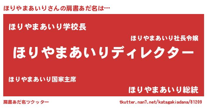 | 男性向けラノベタイトル風あだ名 | 『ほりやまあいりに滅ぼされるだけの簡単なお仕事です』 |