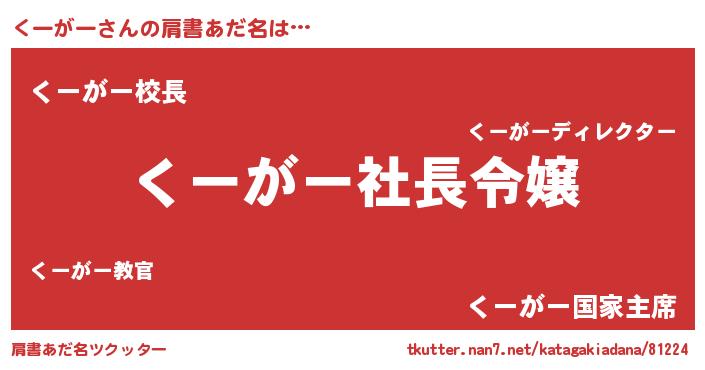 | 女子向けラノベタイトル風あだ名 | 『(仮)くーがーのやんごとなき事情』 |