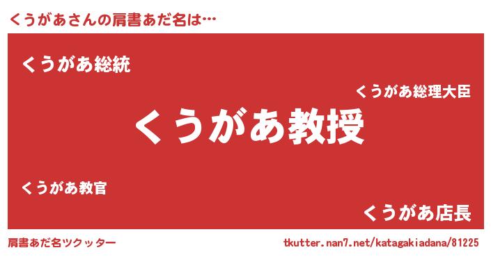 | 男性向けラノベタイトル風あだ名 | 『おまえをオタクにしてやるから、俺をくうがあにしてくれ! 』 |