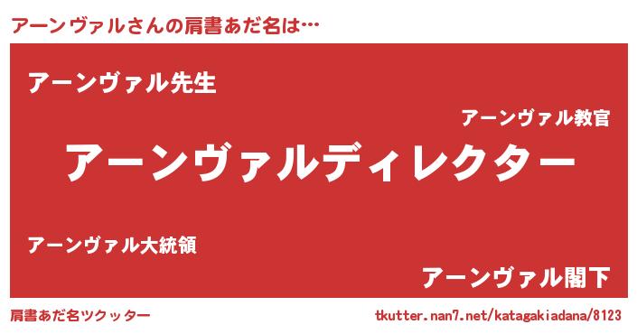 | 胡散臭い通販商品みたいなあだ名 | 『来世でも幸せになれる健康食品…その名も「アーンヴァル」』 |