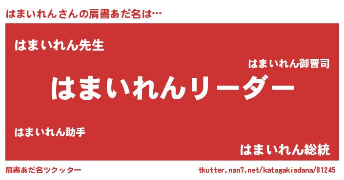 | 女子向けラノベタイトル風あだ名 | 『はまいれんの卵を拾いまして』 |
