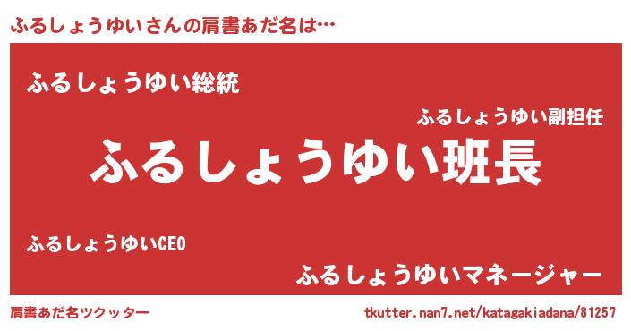 | ポケモン風あだ名 | 『ヒフルショウユイ』『フルセウス』 |