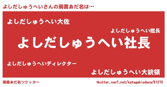 | ヒーロー風カッコイイあだ名 | 『スーパーヨシダシュウヘイ』 |