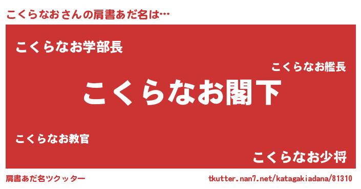 | 女子向けラノベタイトル風あだ名 | 『こくらなおストレイドッグス』 |