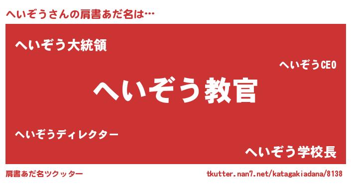 | ヘコむあだ名 | 『豆乳』『へいにゅー』『へいを』 |