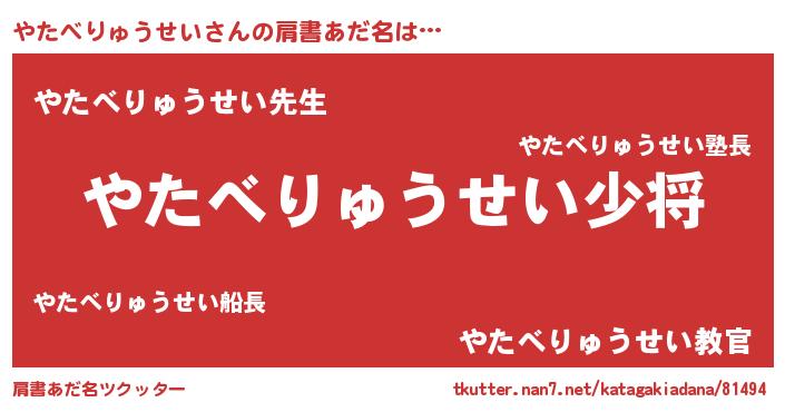 | ヘコむあだ名 | 『やたべりゅうせい(苦笑)』『やたお』 |