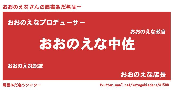 | 男性向けラノベタイトル風あだ名 | 『転生したらおおのえなだった件』 |
