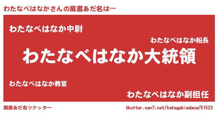 | ファンタジー風あだ名 | 『エターナルワタナベハナカー』 |