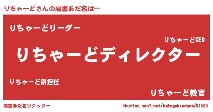 | 男性向けラノベタイトル風あだ名 | 『はたらくりちゃーどさま!』 |
