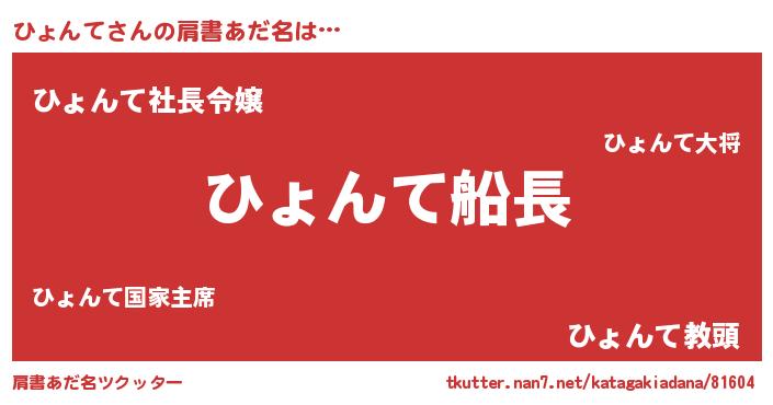 | 男性向けラノベタイトル風あだ名 | 『うちのひょんてが世界を掌握している!』 |