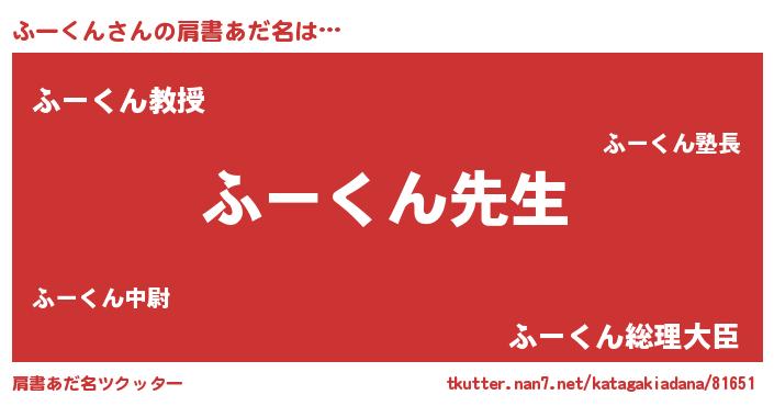 | 女子向けラノベタイトル風あだ名 | 『ふーくんの契約王妃』『ふーくん恋絵巻』 |