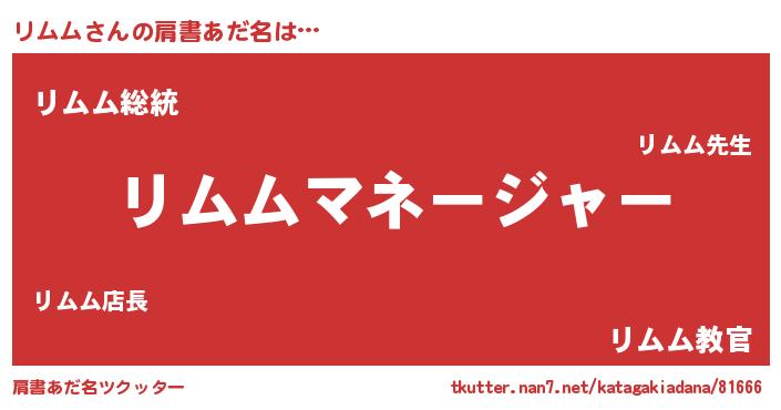 | ヘコむあだ名 | 『リムム(笑)』『リムもー』 |
