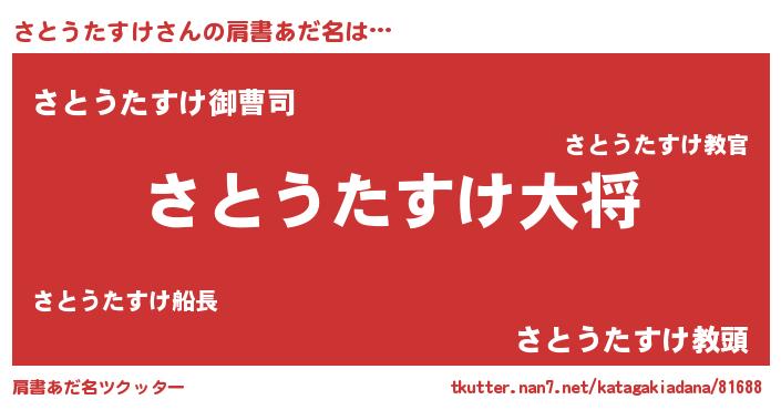 | 胡散臭い通販商品みたいなあだ名 | 『必ず成功する霊験あらたかなお札…その名も「さとうたすけ」』 |