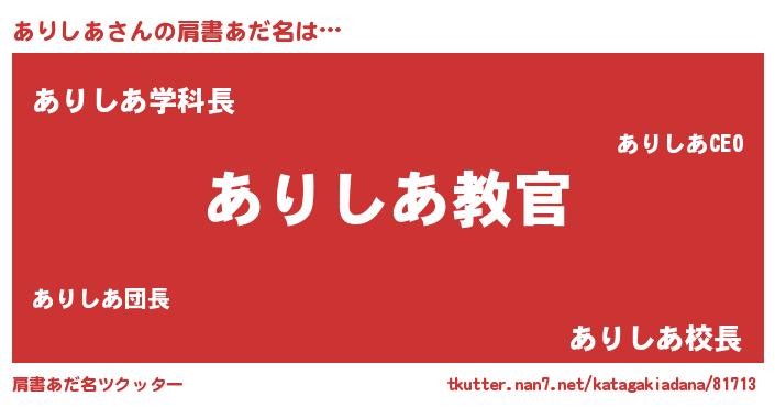 | ヒーロー風カッコイイあだ名 | 『仮面アリダー』『愛の使者ありしあ』 |