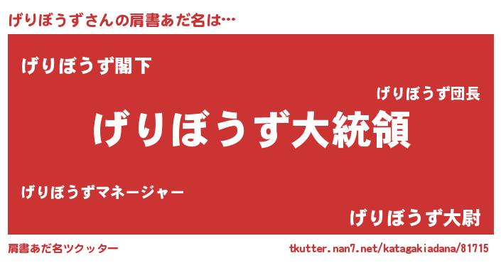 | ファンタジー風あだ名 | 『エターナルゲリボウズー』『ゼゲリトゥ』 |