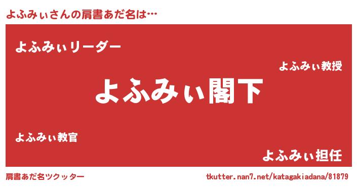 | 意味不明あだ名 | 『自称よふみぃ』『永久保存よふみぃ』 |