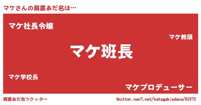 | 女子向けラノベタイトル風あだ名 | 『マケ様がみてる』『マケ姫と円卓の騎士』 |
