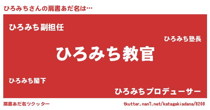 | ヘコむあだ名 | 『ひろみち(爆)』『ひろぷりん』 |