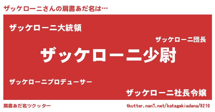 | ポケモン風あだ名 | 『ザッキング』『ザッケダネ』 |