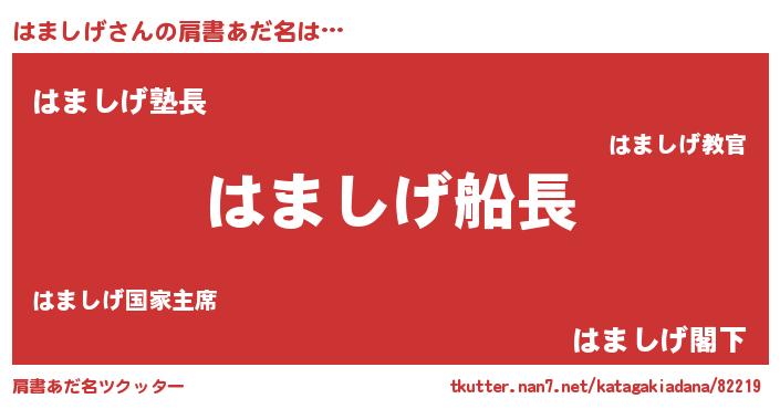 | 意味不明あだ名 | 『とにかく怪しいはましげ』 |