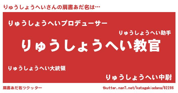 | 男性向けラノベタイトル風あだ名 | 『魔弾の王とりゅうしょうへい』 |