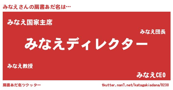 | 意味不明あだ名 | 『みなえフォーエバー』『ペロリンみなえ』 |