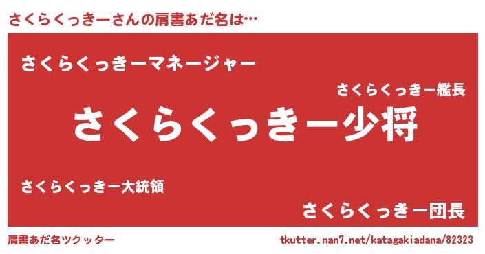 | 男性向けラノベタイトル風あだ名 | 『さくらくっきー~年齢イコール彼女いない歴の魔法使い~』 |