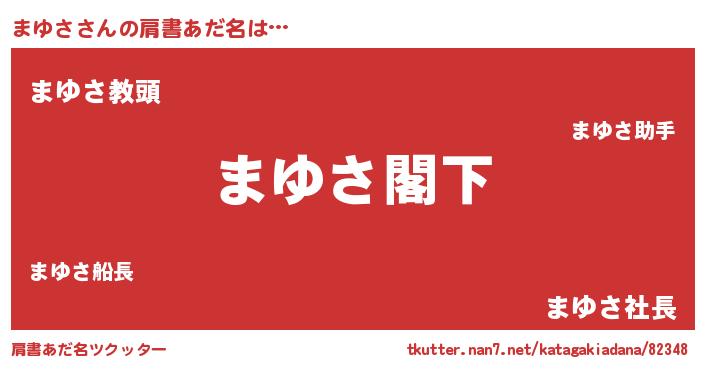 | 男性向けラノベタイトル風あだ名 | 『Re:まゆさから始める異世界生活』 |