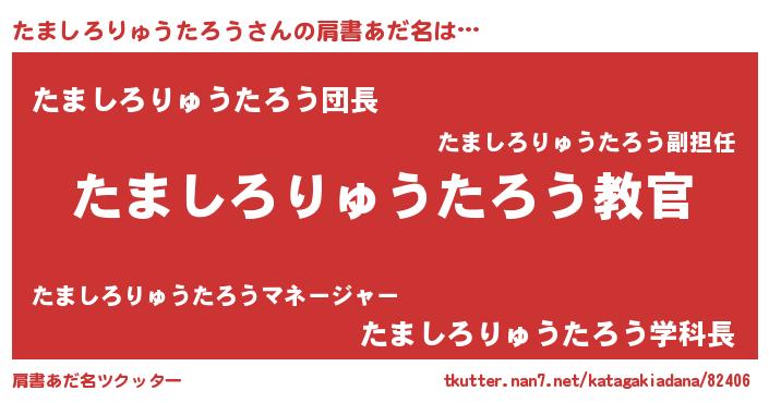 | 男性向けラノベタイトル風あだ名 | 『魔弾の王とたましろりゅうたろう』 |
