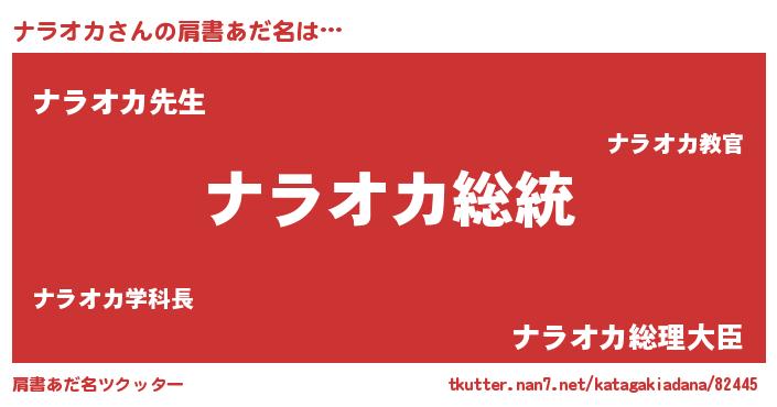 | 意味不明あだ名 | 『自称ナラオカ』『永久保存ナラオカ』 |
