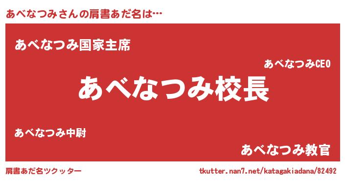 | 意味不明あだ名 | 『永久保存あべなつみ』 |