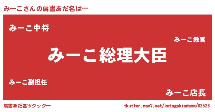 | 意味不明あだ名 | 『みーこフォーエバー』『ニラ科みーこ属』 |