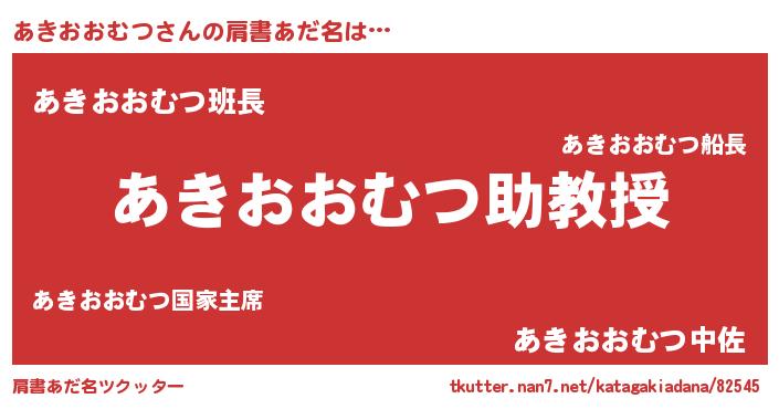 | 男性向けラノベタイトル風あだ名 | 『ノーゲーム・ノーアキオオムツ』 |