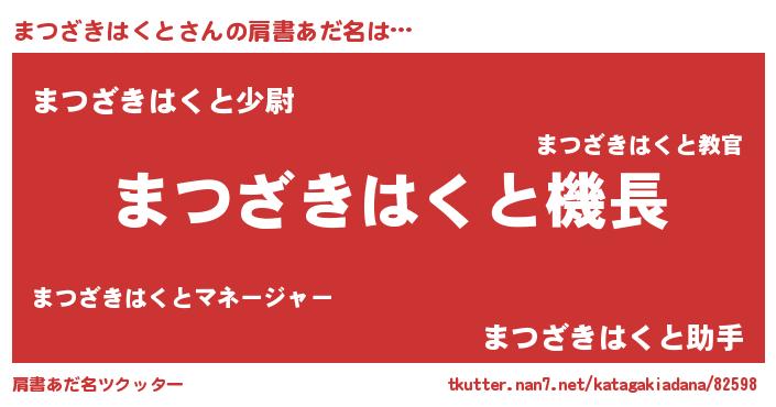 | 男性向けラノベタイトル風あだ名 | 『うちのまつざきはくとが世界を掌握している!』 |