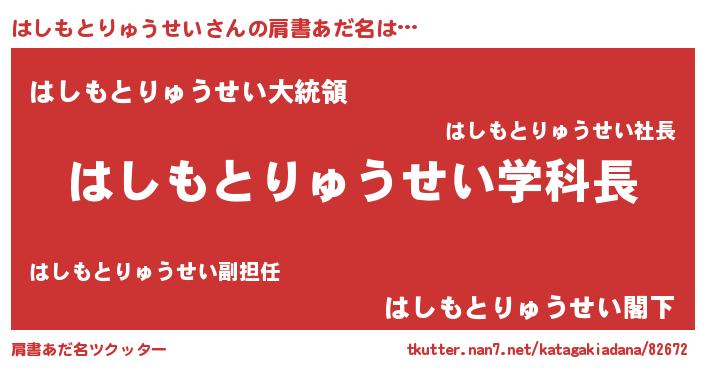 | 胡散臭い通販商品みたいなあだ名 | 『お金では代えられない隕石のかけら…その名も「はしもとりゅうせい」』 |