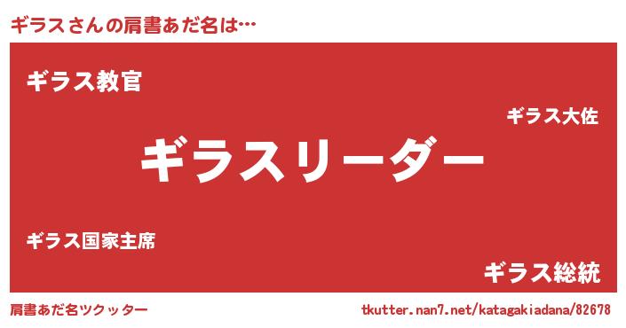 | 男性向けラノベタイトル風あだ名 | 『ダンジョンにギラスを求めるのは間違っているだろうか』 |